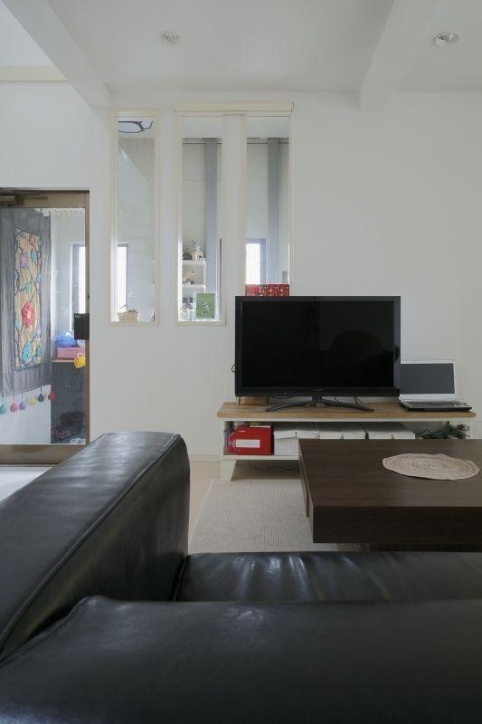 墙壁开了三道室内窗,增加了客厅的采光和通风。