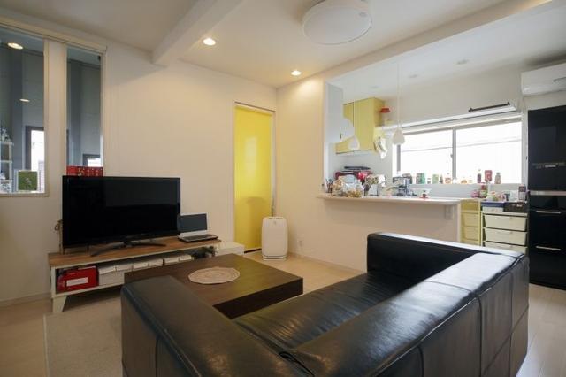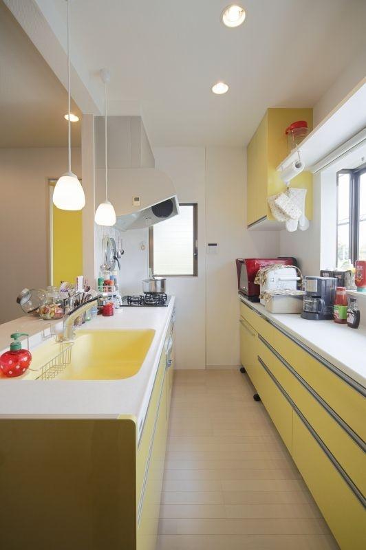 厨房是日本比较常见的开放式的,功能区分得很开,备餐台和做饭的地方不在一起,也比较方便。色彩相对客厅装饰就比较小清新了,橱柜是浅黄色的,平时做饭时心情也会愉悦。